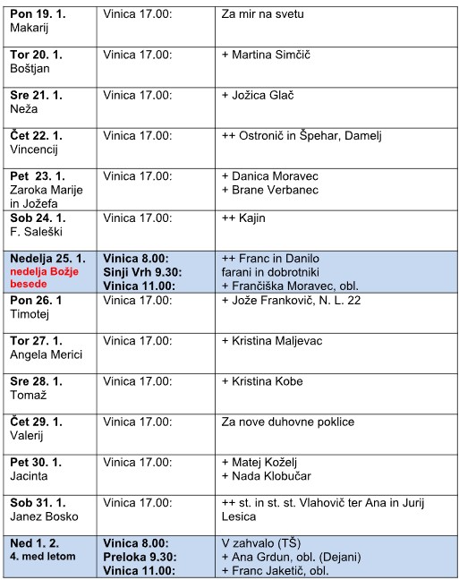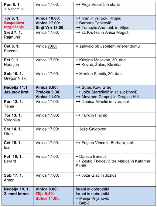 Srečanje župnijskega sveta bo v petek, 23. 1., po maši.