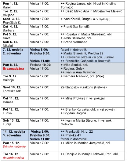 Spravni dan s celodnevnim spovedovanjem v Črnomlju bo v petek, 19. 12., od 6. ure dalje.