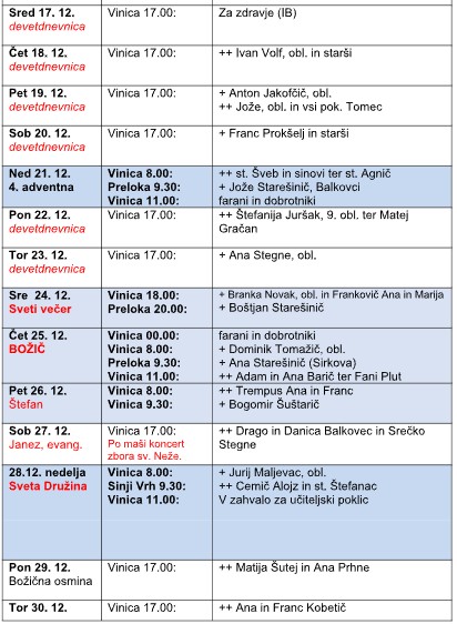 Božična devetdnevnica v Vinici se začne v torek, 16. 12. To je za stare in mlade najlepša priprava na Božič.